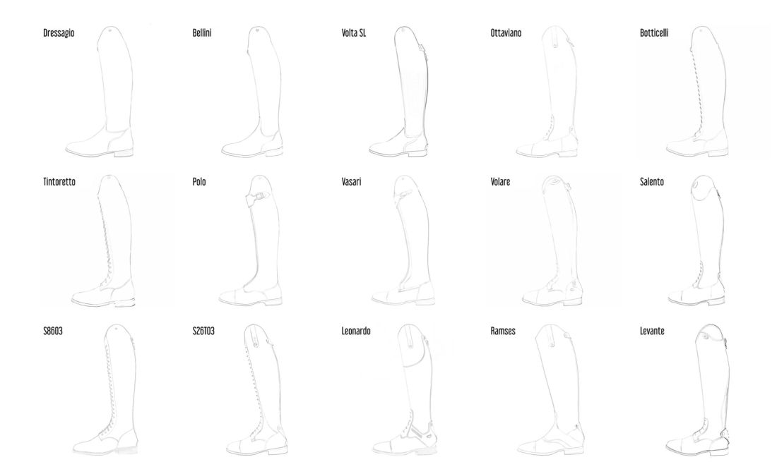 The model determines, among other things, the place of the zipper and the shape of the ankle. Of course, different colors, leather types, details and options are possible for each model. When choosing the model of the foot, it is therefore only about the design of the model.