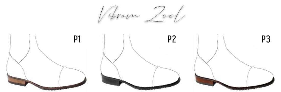 All Niro boots are made with the Vibram sole. This is a very durable and environmentally friendly sole and is available in three colors: Light brown wood look (P1), black (P2) and dark brown wood look (P3)