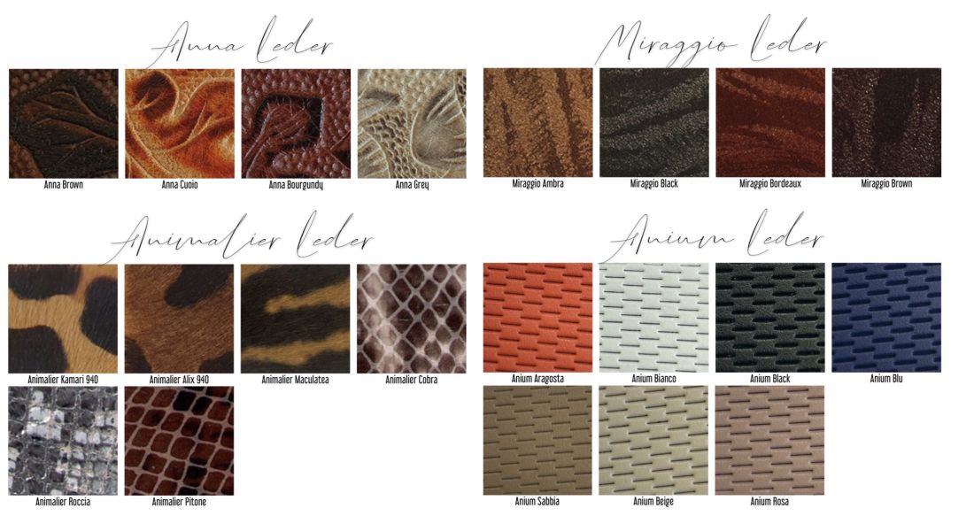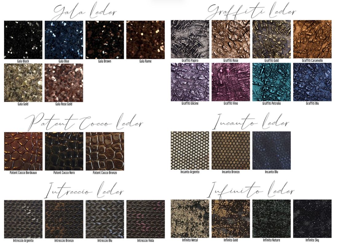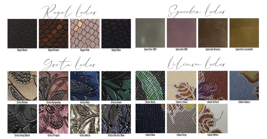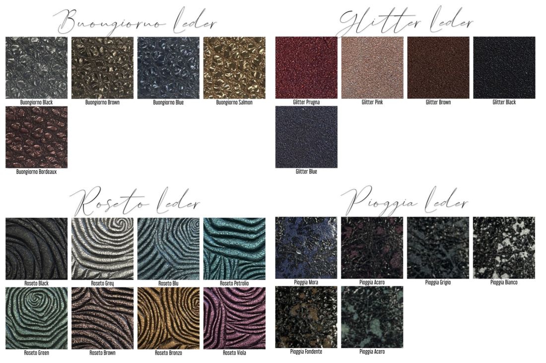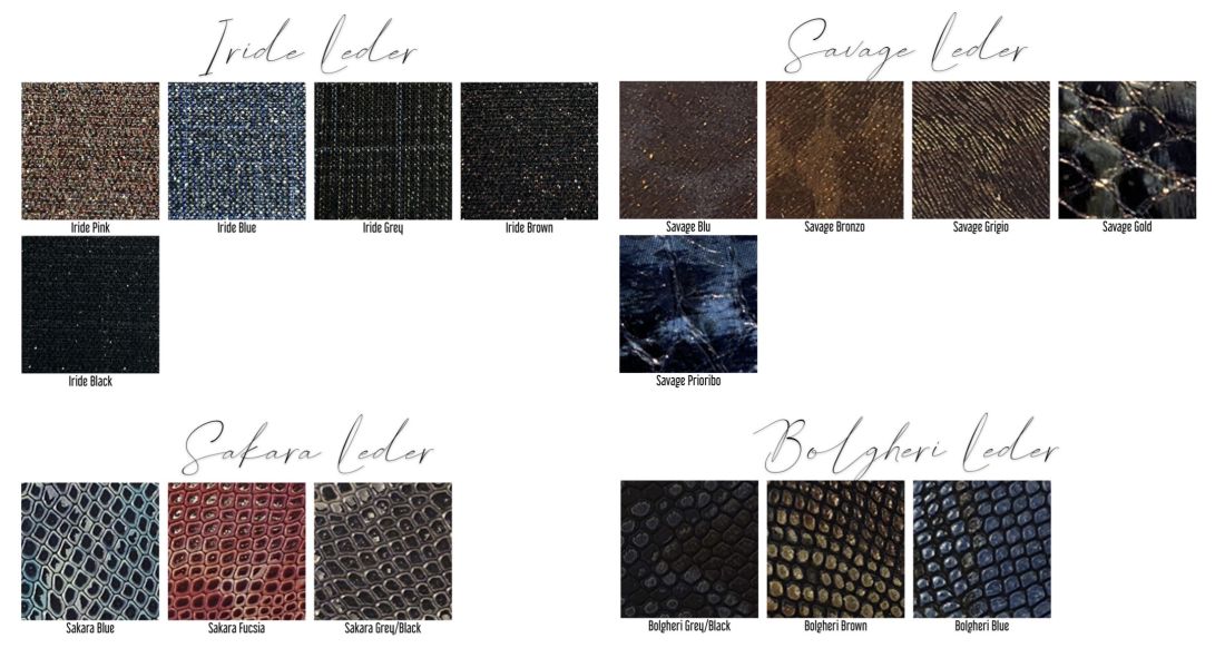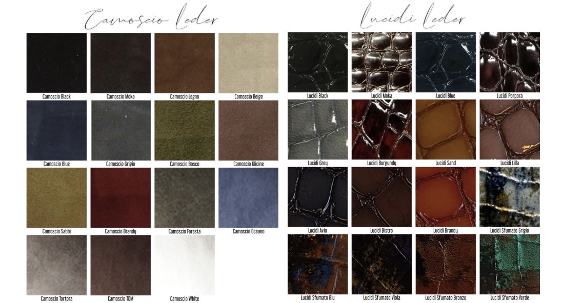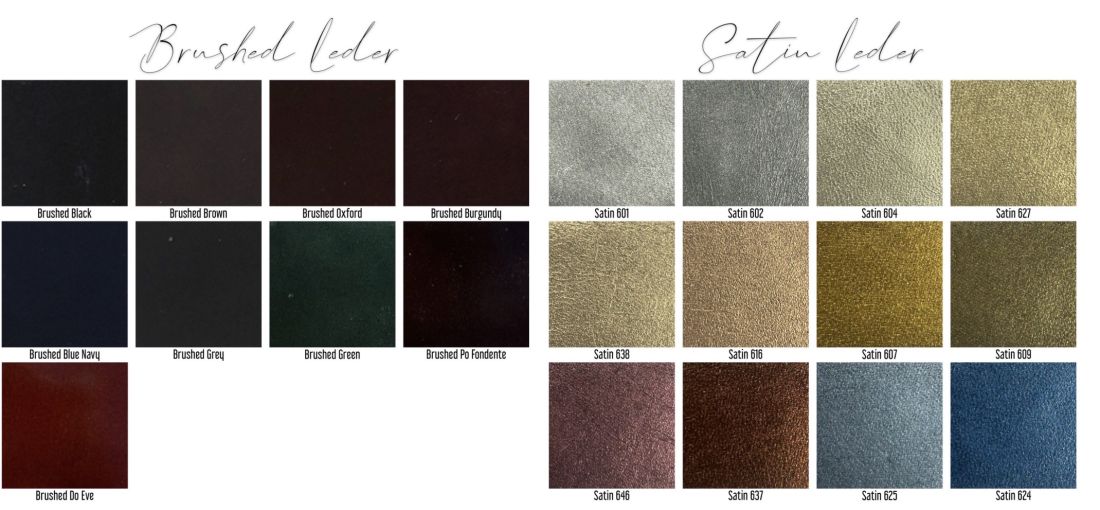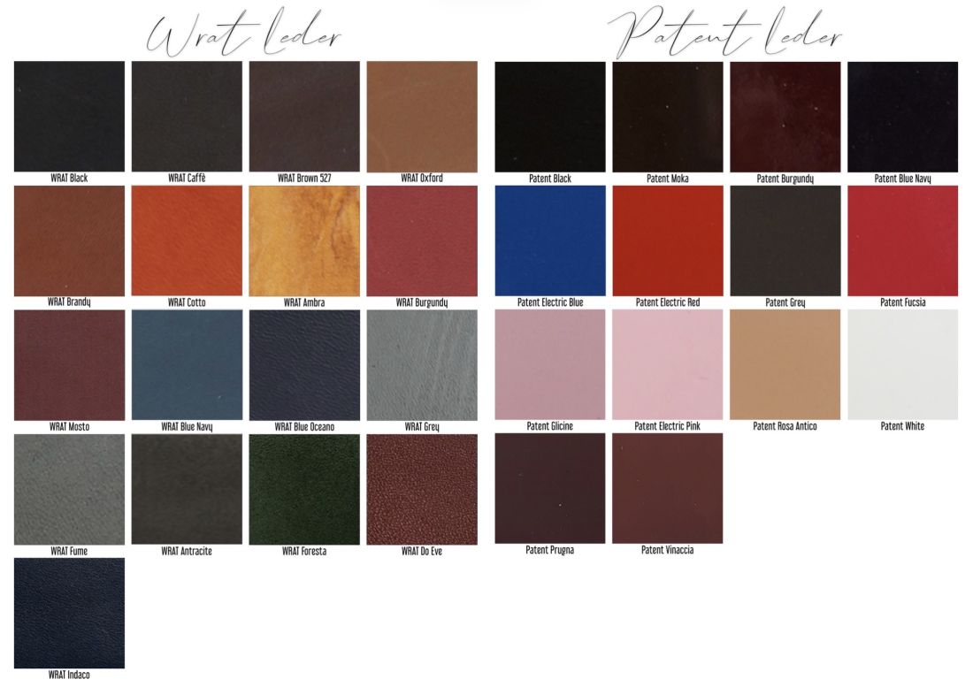 The Niro Boot Co. offers more than 200 types of leather. The samples of the leathers are shown below. Do you need a better picture of one of our colors? Or an impression of how two colors would be together? Let us know! Our specialists have years of experience in designing De Niro boots. We are happy to help you!