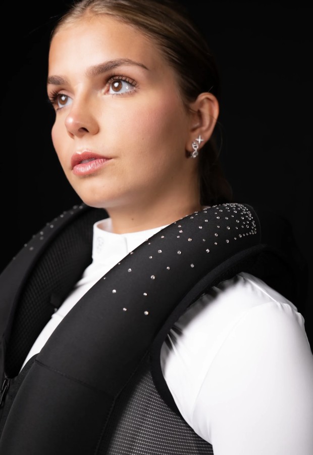 Adorned with Swarovski diamonds, this shower of rhinestones makes you shine, whether you're training or competing. Combine lightness, high-end protection and incomparable brilliance.