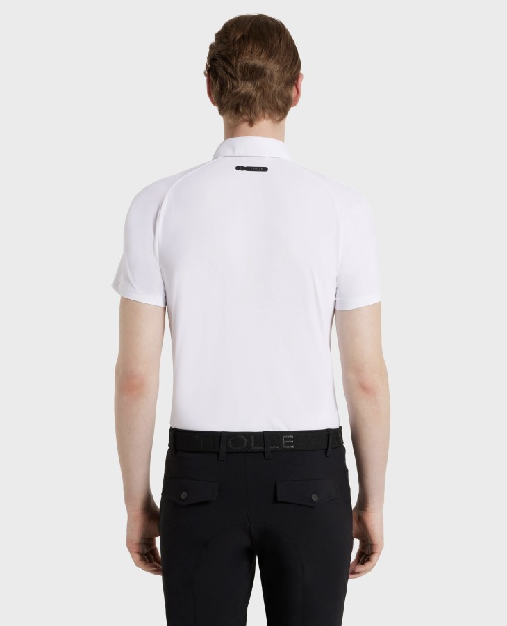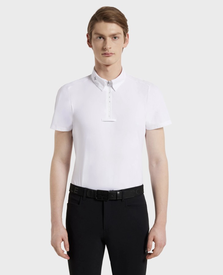 This Competition Polo is specifically designed to perform. Crafted from technical jersey, it’s breathable and quick-drying, enhancing functionality and comfort during intense activities. It features a sealed zipper closure with a delicate print for added style.